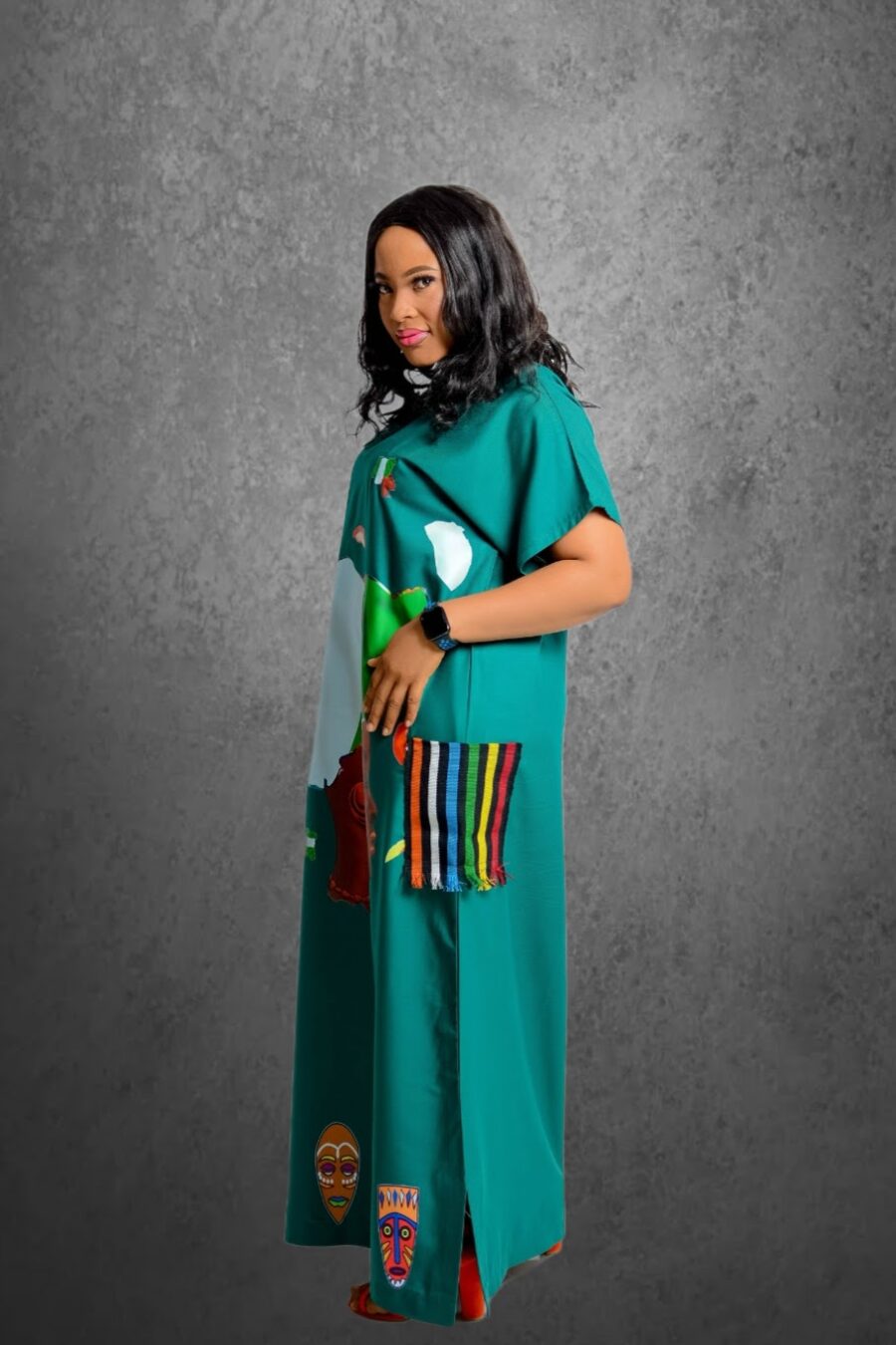 ABAYA MAXI DRESS MADE WITH WOOL, ASO OKE POCKET AND PRINT