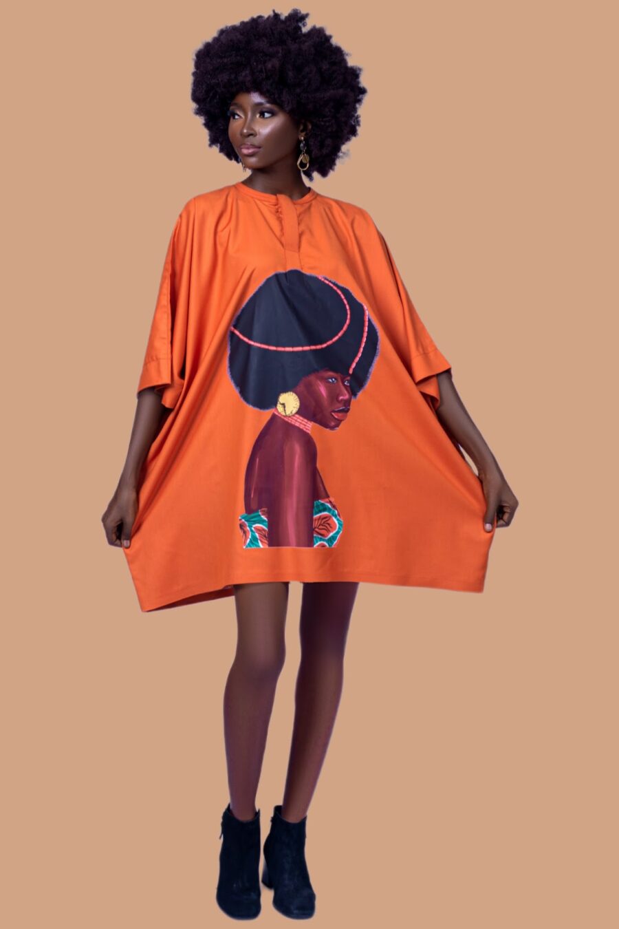 MIDI AGBADA DRESS WITH AFRO INSPIRED AFRO
