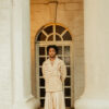 BIEGE ENSEMBLED DOUBLE BREASTED BLAZER AND PLEATED TROUSER