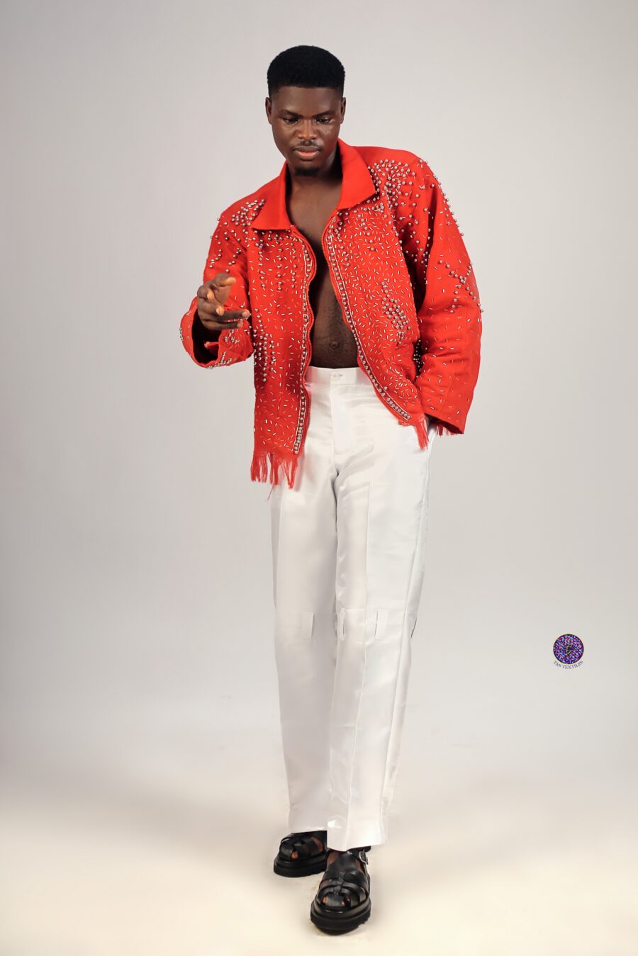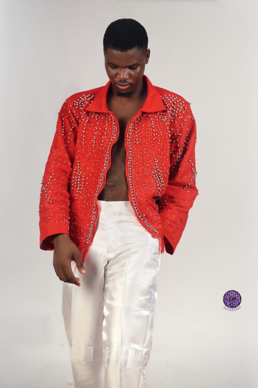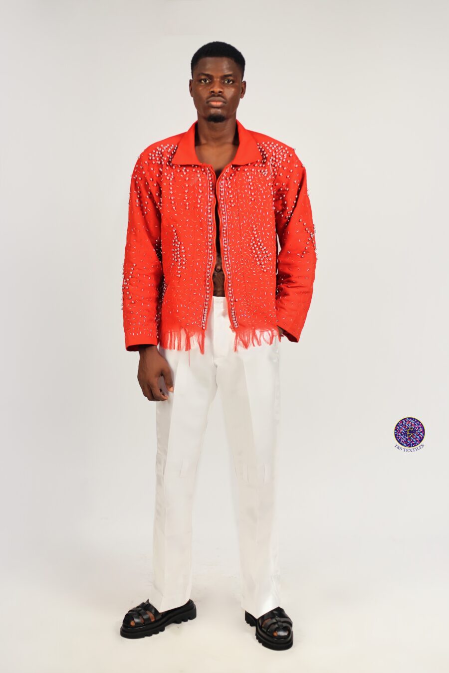 DOUBLED WEAVED ASO OKE LONG SLEEVE JACKET ADORN WITH GLASS BEADS