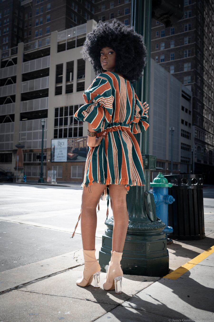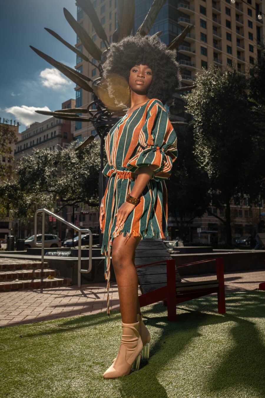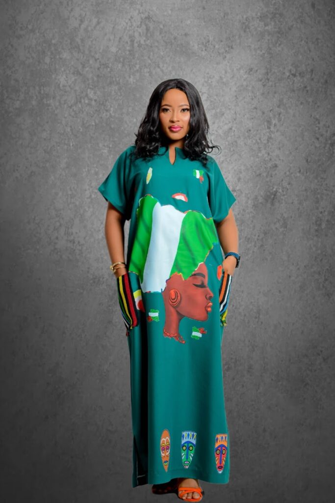 ASO OKE MIDI DRESS WITH DOUBLE PUFF SLEEVES