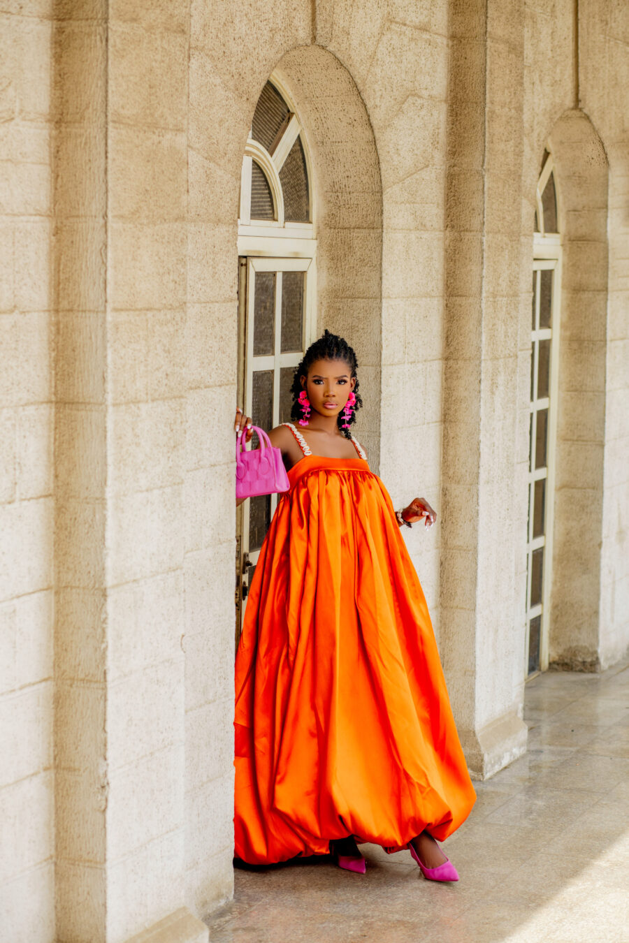 A STATEMENT VOLUMINOUS BALLOON GOWN FLOATING BUBBLE AFRO LUXE